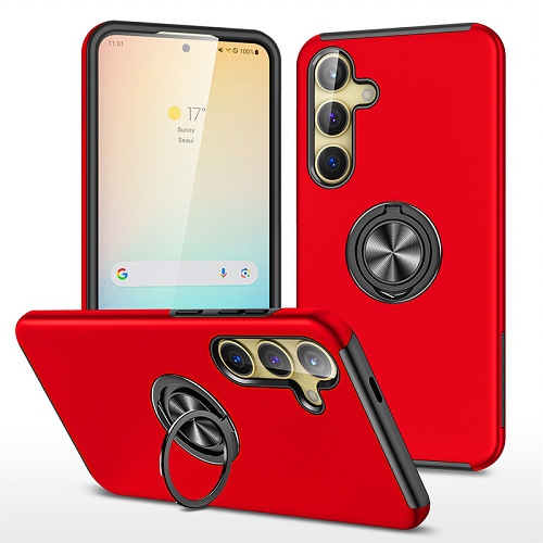 TopSave "Hidden Series" Solid Color PC Back Combine w/Inner Black TPU Bumper Kickstand Armor Case For Samsung Galaxy A35 5G 6.6", Red