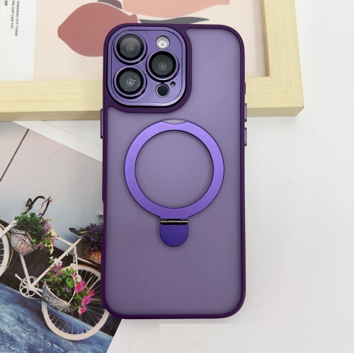 TopSave Magnetic Ring Stand [Compatible with Magsafe]Translucent Back Slim Phone Case For iPhone 14 Pro Max 6.7", Deep Purple