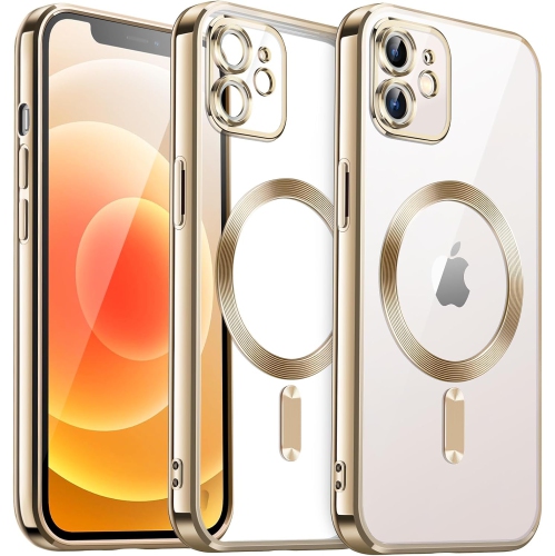 TopSave Soft Clear Case for iPhone 11 6.1-Inch, Camera Lens Full Protection, with MagSafe, Shockproof Electroplated TPU Cover, Gold
