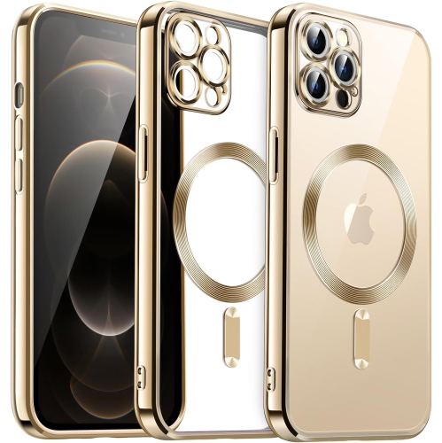 TopSave Soft Clear Case for iPhone 12 Pro 6.1-Inch, Camera Lens Full Protection, with MagSafe, Shockproof Electroplated TPU Cover, Gold