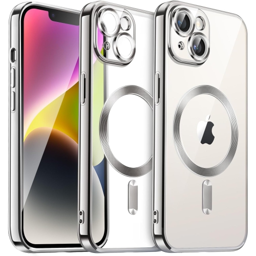 TopSave Soft Clear Case for iPhone 15 6.1-Inch, Camera Lens Full Protection, with MagSafe, Shockproof Electroplated TPU Cover, Silver