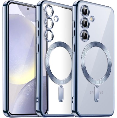 TopSave Soft Clear Case for Samsung Galaxy S24 Plus 6.7-Inch, Camera Lens Full Protection, with MagSafe, Shockproof Electroplated TPU Cover, Blue