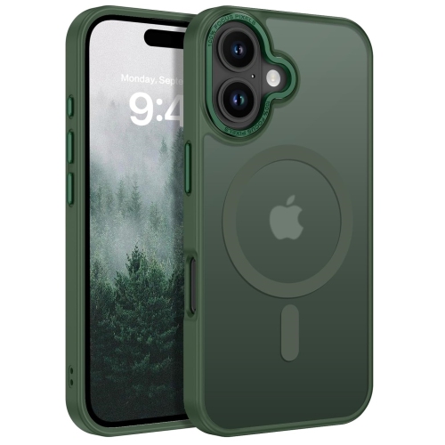 TopSave Strong Magnetic Compatible with MagSafe, Translucent Matte Slim Protective Case with Raised Camera Lens and Metallic Trim For iPhone 16 Plus, Dark Green