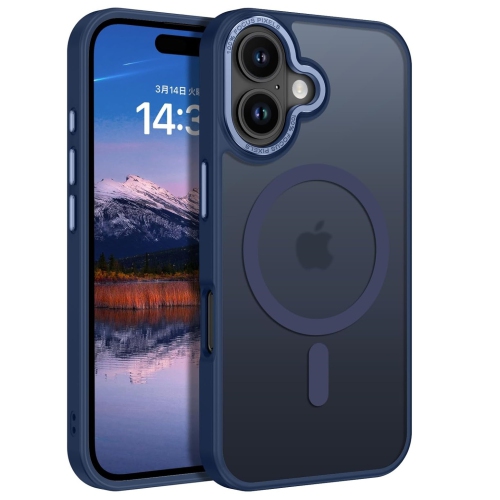 TopSave Strong Magnetic Compatible with MagSafe, Translucent Matte Slim Protective Case with Raised Camera Lens and Metallic Trim For iPhone 16 Plus, Navy Blue