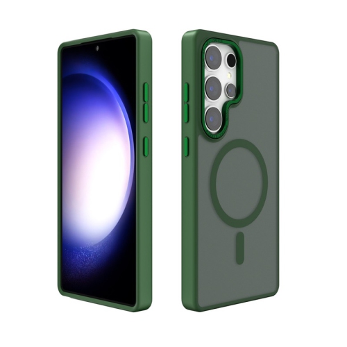 TopSave Strong Magnetic Compatible with MagSafe, Translucent Matte Slim Protective Case with Raised Camera Lens and Metallic Trim For Samsung Galaxy S25 Ultra, Dark Green