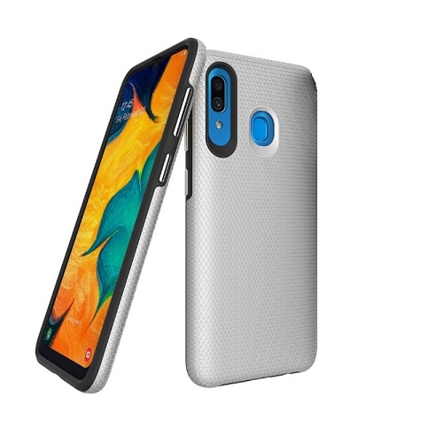 TopSave Triangle Designed Dual Layer Hybrid Case For Samsung A20s, Silver