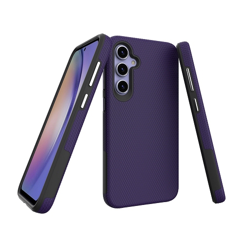 TopSave Triangle Pattern PC Back+Inner TPU Dual Layer Hybrid Case For Samsung Galaxy S23 FE (6.4"), Dark Purple