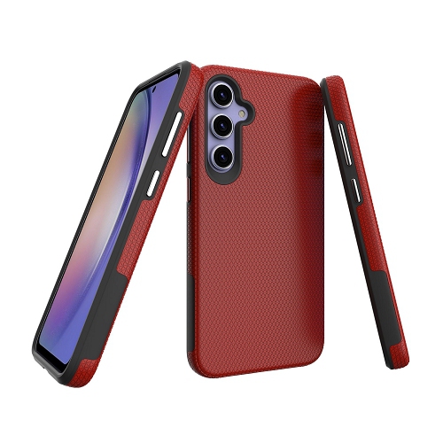 TopSave Triangle Pattern PC Back+Inner TPU Dual Layer Hybrid Case For Samsung Galaxy S23 FE (6.4"), Red