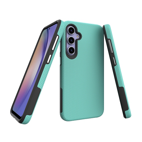 TopSave Triangle Pattern PC Back+Inner TPU Dual Layer Hybrid Rugged Armor Case For Samsung Galaxy S24 FE 6.7-Inch, Teal