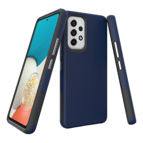 TopSave Triangle Pattern PC Back+Inner TPU Dual Layer Rugged Hybrid Armor Case For Samsung Galaxy A33, Navy Blue