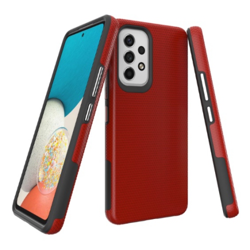 TopSave Triangle Pattern PC Back+Inner TPU Dual Layer Rugged Hybrid Armor Case For Samsung Galaxy A33, Red