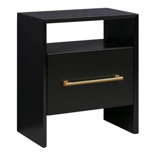 Stunning in its simplicity, this clean-lined nightstand modern appeal and stylish functionality. One drawer and a shelf above provide ample bedside storage. Available in two color options.Features : Material: Acacia woodFinish: BlackHandcrafted by skilled furniture artisansBeautiful gold finished handleOne drawer and a shelf above provide ample bedside storageSpecifications : Pr...