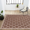 Our popular geometric design is inspired by Moroccan tile patterns. This classic rug adds eclectic style to an outdoor porch or patio. Mingled tones of espresso brown with a taupe ogee trellis pattern give this rug a hand-woven texture.