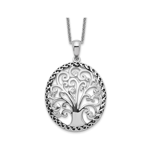 This beautiful pendant features an intricate design of a tree crafted from sleek sterling silver. Each 'Tree of Life' pendant includes special packaging and a unique poem. Part of the Sentimental Expressions collection, jewelry with a message! With added sparkle from brillianr white synthetic cubic zirconias and an 18 inch siler chain this is truly a special gift.