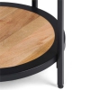 Combine form and function with this Trent Home Round Side Table. The natural wood finished round top offers plenty of space while the bottom shelf allows you to store small objects, books, and magazines. Featuring black metal frame and legs, this side table is designed to be the perfect addition to any seating area or bedroom in your home.Features : Finish: NaturalHandcrafted with care using the finest quality Mango Hardwood and Solid ...