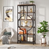 Combining simple rustic brown shelves with a black steel frame, the tall etagere bookcase adds a retro touch to any room. Ideal for living rooms, bedrooms, kitchens, and offices, blending seamlessly with various decors