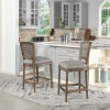 Accent your kitchen island counter or your counter height dining table with a set of the Triomphe Collection Bar Stools by Jennifer Taylor Home. This lovely chair is in the quintessential French Country style with an antiqued solid Oak wood frame and open cane wicker back. The armless silhouette allows these stools to be pushed in against the table. The brass nail heads are an artisan touch and match the brass footrest plate that protects the stool from scuffs and scra...