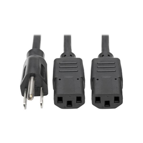 Y Splitter AC Power Cable, NEMA 5-15P to 2x C13 - 10A, 125V, 18 AWG, 6 ft., Black