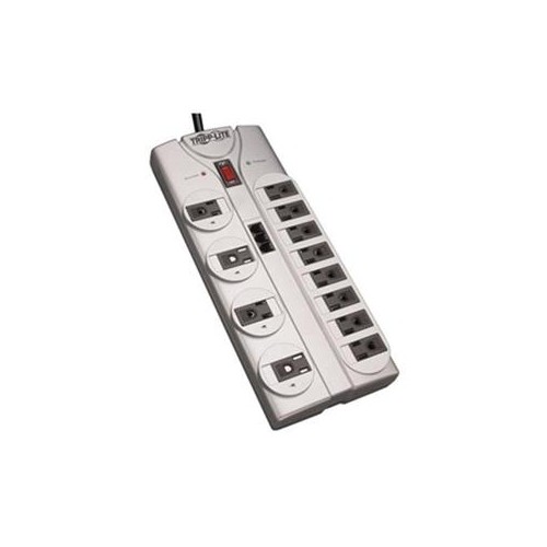 Tripp Lite's TLP1208TEL offers economical AC surge suppression for protection of workstations - PCs - tel systems - home electronics and other sensitive equipment. The TLP1208TEL features 12 outlets - an 8-ft. cord with a space-saving right-angle plug - and diagnostic LEDs to warn of suppressor damage. The unit has a surge suppression rating of 2160 joules to shield equipment from line...