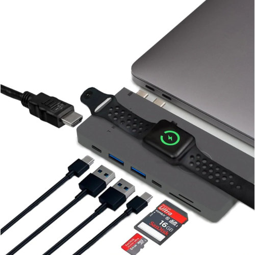 TROOSS is the first USB-C hub for Macbook Pro and Air developed with a special technology that allows you to charge any Qi-standard wireless charging compatible device or Apple Watch wirelessly in one place.