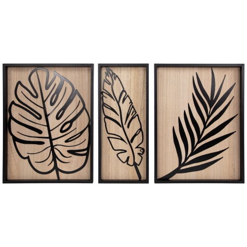 Set of 3 decorative wooden wall signs. Each sign features a different tropical leaf. Perfect addition to any room