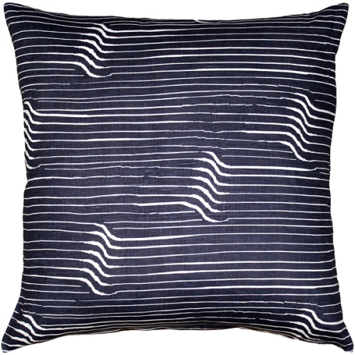 Deep navy blue stripes make symmetrical detours across this 100% linen pillow. The freehand style of the lines give the pillow a more relaxed and whimsical feel, without diminishing its classic, blue and white striped appeal.