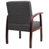 Enhance your office decor and ensure optimal comfort with this guest chair from TygerClaw. Whether being used for short waits or extended meetings, this chair's built-in lumbar support encourages proper sitting posture. The fabric upholstery and glossy wooden armrests provide premium comfort, and its modern style will look great in any office or workplace.