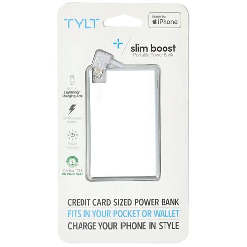 TYlt +Slim Boost Portable Power Bank Credit Card Sized Battery Pack Silver
