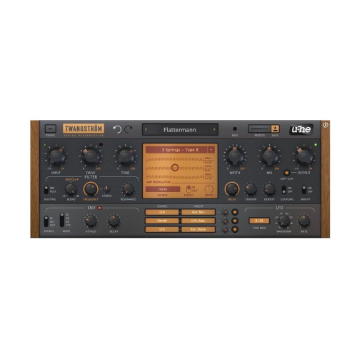 As a faithful emulation of a mechanical device, Twangström needs to be handled well. Many of the technical parameters are user-adjustable in real time, and these can be controlled via MIDI or using the internal LFO and envelope generator. With its multimode resonant filter, Twangström is a unique and powerful tool which can deliver highly unusual, evolving textures… especially when the signal is tossed around using the modulation matrix!