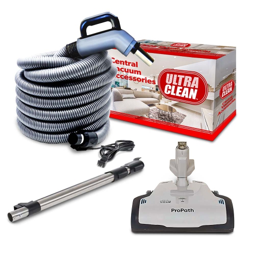 Ultra Clean Central Vacuum Electric Attachment Kit - Dual Voltage Hose 3-Way on/Off Switch Handle- Propath Power Nozzle – Wand (35ft Pigtail Black)