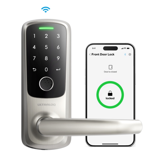 ULTRALOQ Latch 5 Built-in WiFi Keyless Entry Smart Lock with Fingerprint, Touch Digital Keypad, App Control-Satin Nickel