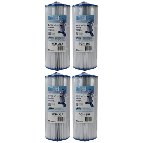 Featuring 35 square feet of 3-ounce basis weight media made of 100-percent polyester Reemay material, this 4-pack of Unicel 5CH-352 Cartridge Filters for Hot Tubs ensures high performance and dependable filtration over time. The uniform pleats and Reemay media deliver higher dirt-holding capacity and more time between cleanings. Plus, the smooth surface of the media makes it easy to mainta...