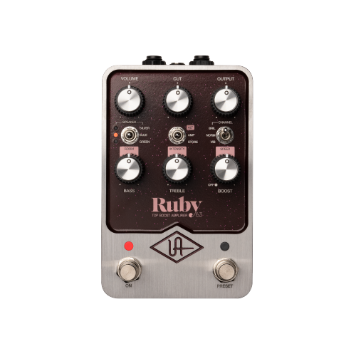 Get the British Invasion tones that inspired generations. The UAFX Ruby '63 Top Boost Amplifier pedal gives you the quintessential British valve amp beloved by artists and producers for over 60 years, from Queen to U2 to Radiohead. Built on powerful dual-engine processing and world-class UAD modeling, Ruby '63 delivers choirboy cleans, complex overdrive, and classic vibrato.