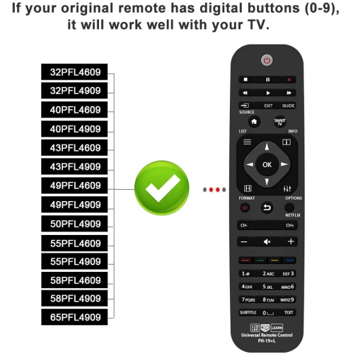 Universal Remote Control PH-19 for Almost All Brand LCD LED HDTV, 23 24 28 29 32 39 40 43 46 47 49 50 55 58 65 75 inch Smart TV, URMT39JHG001/G002/G003, URMT41JHG003/G006/G010