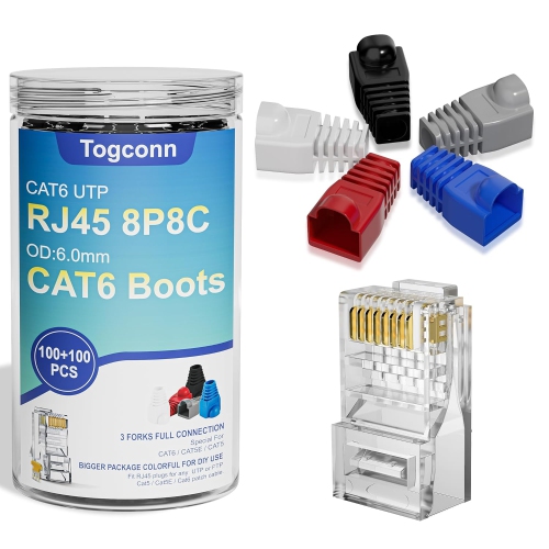 UnShielded RJ45 Cat6 Cat 6A Connectors &Cat6A/Cat7 Ethernet RJ45 Boots Strain Relief Boots Cable Cap Connector