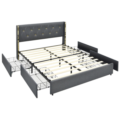 Full/Queen Size Upholstered Bed Frame with 4 Storage Drawers-Full Size