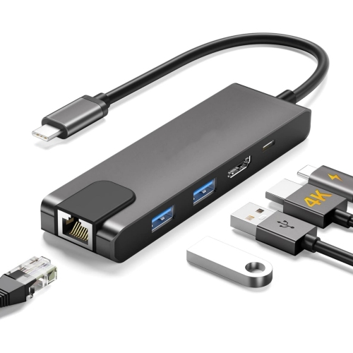 USB C Ethernet Hub-1000Mbps, 5 in 1 USB C Dongle USB C Multiport Adapter with HDMI 4K, 2 USB 3.0, 100W PD, USB C Dock for MacBook Pro/Air M1, iPad Pro, Chromecast, Switch, PS4