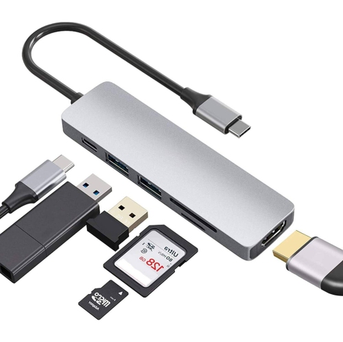 USB C Hub, 6 in 1 Multiport USB-C Adapter with 4K HDMI/USB 3.0/USB 2.0/SD/TF Card Reader/USB-C PD, Charging Port Compatible with Laptop,Computer,MacBook,iMac,iPad