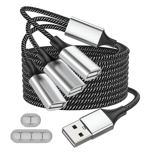 USB Extension Cable, 4Ft Long USB Cable, USB Y Splitter 1 Male to 3 Female USB Adapter Compatible with Webcam, Camera, Phone, USB hub, Mouse, Keyboard, Printer, Hard Drive, , Xbox Cell Phone Batteries