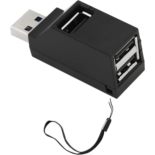 USB Hub 90 Degree Splitter 3 Port USB 2.0 Adapter Portable Powered Data USB Hub High Speed Transfer for PC Laptop USB Flash Drive Black