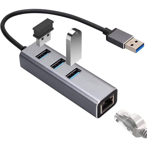 USB to Ethernet Adapter HUB, 4 in 1 Ethernet Adapter, Compatible with Windows/Mac OS/Android/Chrome OS/Linux