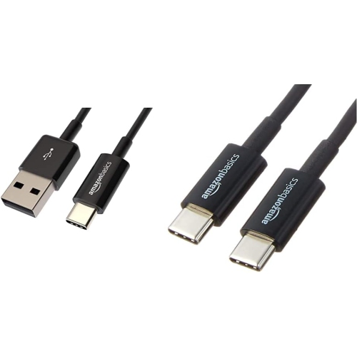 USB Type-C to USB-A 2.0 Male Charger Cable, 3 Feet (0.9 Meters), Black, 1 Count, 1-Pack & USB Type-C to USB Type-C 2.0 Charger Cable - 3-Foot, Black
