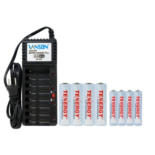 V-868 8 Bay AA & AAA Charger + 4 AA (2500 mAh) + 4 AAA (1000 mAh) Tenergy NiMH Rechargeable Batteries.