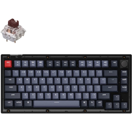 V1 Hot-swappable Custom Mechanical Keyboard, 75% Layout Knob QMK/VIA Programmable RGB Backlight, Type-C Wired with Keychorn K Pro Brown Switch for Mac Windows - Frosted Black