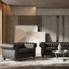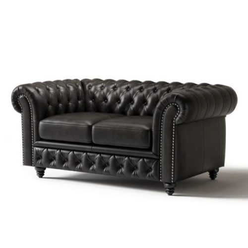 Valencia Parma 64" Wide Full-Aniline Leather Loveseats Chesterfield Antique Black Sofa