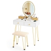 Vanity Table Set with Dimmable 3-Color Lighted Mirror for Bedroom