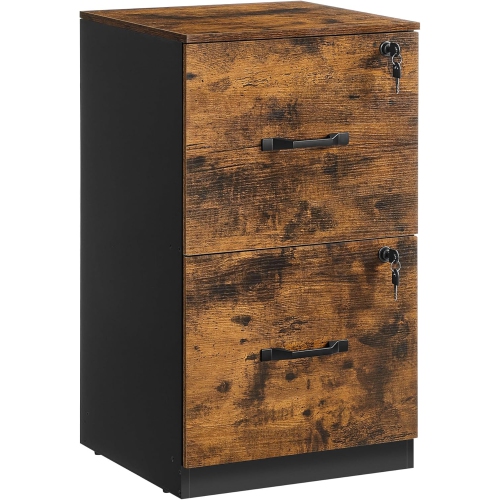 VASAGLE 2 Drawers File Cabinet with Lock, Printer Stand, Office Filing Cabinet Organizer, Rustic Brown