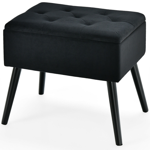 Designed with a hinged lid, this stool features a storage function to accommodate your various items, like books, scarves, socks, or other accessories. It can also serve as a vanity stool or shoe changing stool in ordinary times. Equipped with 4 solid wood legs, it is endowed with high stability for large weight capacity. And velvet surface combined with padded seat also gives you an extremely comfortable sitting.