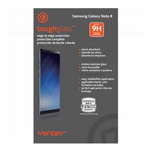 The Ventev Samsung Galaxy Note 8 toughglass edge to edge screen protector is a shatter-resistant tempered glass screen protector that covers the full face of the device for edge to edge protection.