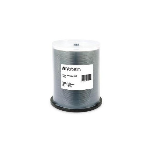 CD-R 80MIN 700MB 52X White Inkjet Printable 100pk spindle. Combining a white inkjet printable surface qualified for high-resolution photo quality disc printing with highly reliable CD-R recording performance - Verbatim White Inkjet Printable CD-R discs provide exceptional printing and recording performance on CD/DVD inkjet printers & duplicators.